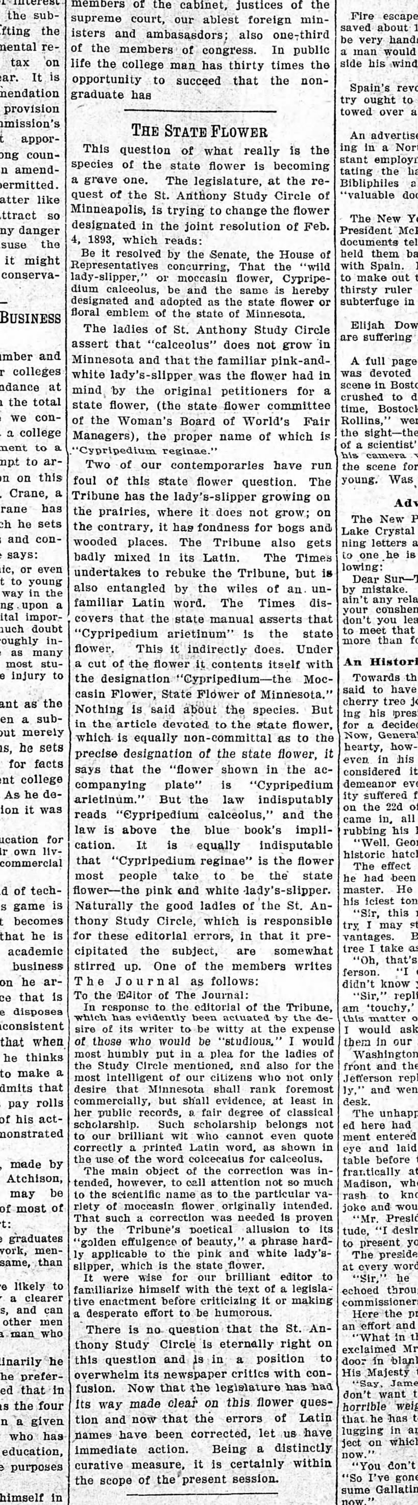 A male writer responded to their efforts with his lengthy opinion about the choice because he believed it did not reflect the character of actual Minnesotans. His choice of state flower would be better because, “It is not modest; nor are they. Like them, it came with the pioneers…It is pugnacious, persistent, flourishing under adversity…it is an indefatigable explorer…it has spread over the state and occupied it.”