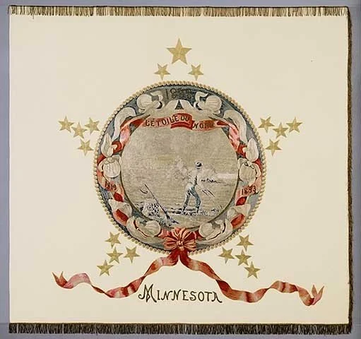 A minor scandal then erupted in 1902 when the officially legislated state flower was called out as a FAKE! The St. Anthony Womens’ Study Group pointed out that the particular variety of lady slipper (cypripedium calceolus that had been incorrectly specified in the legislation did not in fact grow wild in Minnesota and therefore was an improper choice. They also pointed out that this was an oversight by the legislators who had written the bill, not the ladies, because it was obvious that the Women’s Auxiliary Committee had intended to select a pink and white variety of lady slipper (as demonstrated by those embroidered on the flag) versus the maroon and gold variety enshrined in law. They proposed the legislature rectify the situation by designating the state flower the correct pink and white variety (cypripedium reginae), which did actually grow within the boundaries of the state. The legislature ratified this decision.